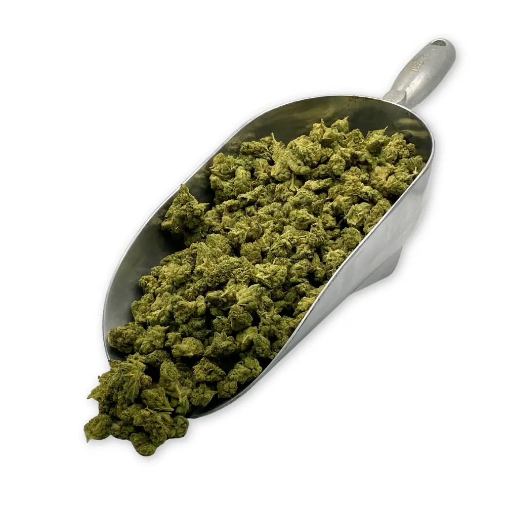 805 Glue is an indica-dominant hybrid (85/15) known for its heavy-hitting, classic Glue-style potency and intensely pungent profile. Its aroma leans super spicy and skunky with deep earthy undertones, while the flavor delivers a bold mix of spice, musk, and soil-rich earthiness. The smalls form in piecey, popcorn-shaped minty green buds coated heavily in tiny white crystal trichomes and accented by thin orange pistils. Often linked to Gorilla Glue family genetics—or Chem’s Sister, Sour Dubb, and Chocolate Diesel—805 Glue showcases a full-bodied terpene expression. This batch tests at 22.61% THCa and 20.83% total cannabinoids.