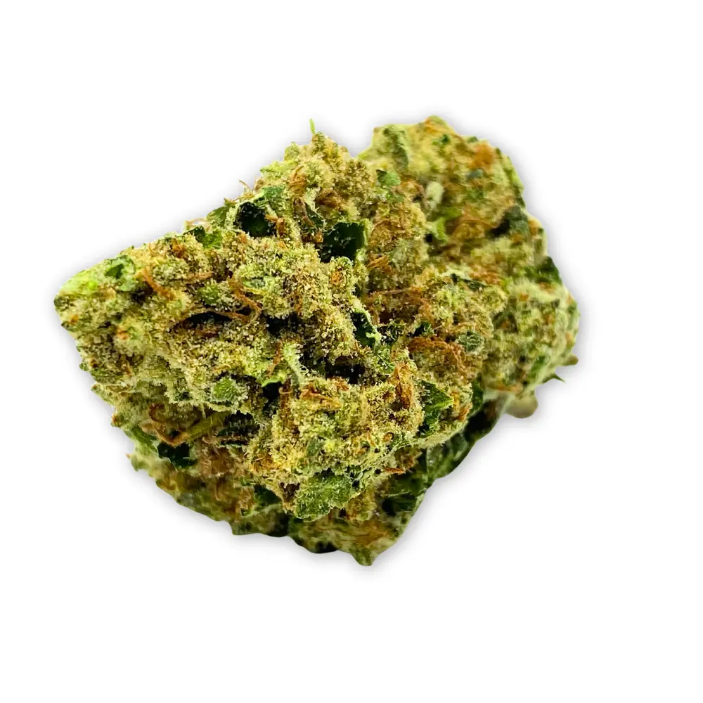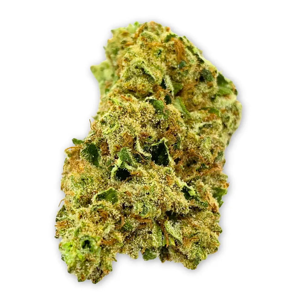 Banana Punch is a balanced hybrid bursting with ripe banana richness and tropical fruit power. Its flavor punches creamy banana smoothie notes accented by pineapple and orange sweetness, while the aroma rings with bruised banana peel, citrus zest, and berry undertones. Visually bold, golden-yellow buds glisten with sticky resin and red pistils throughout. Testing at 26.71% THCa and 27.04% total cannabinoids, Banana Punch delivers a smooth yet vibrant fruit-forward profile.