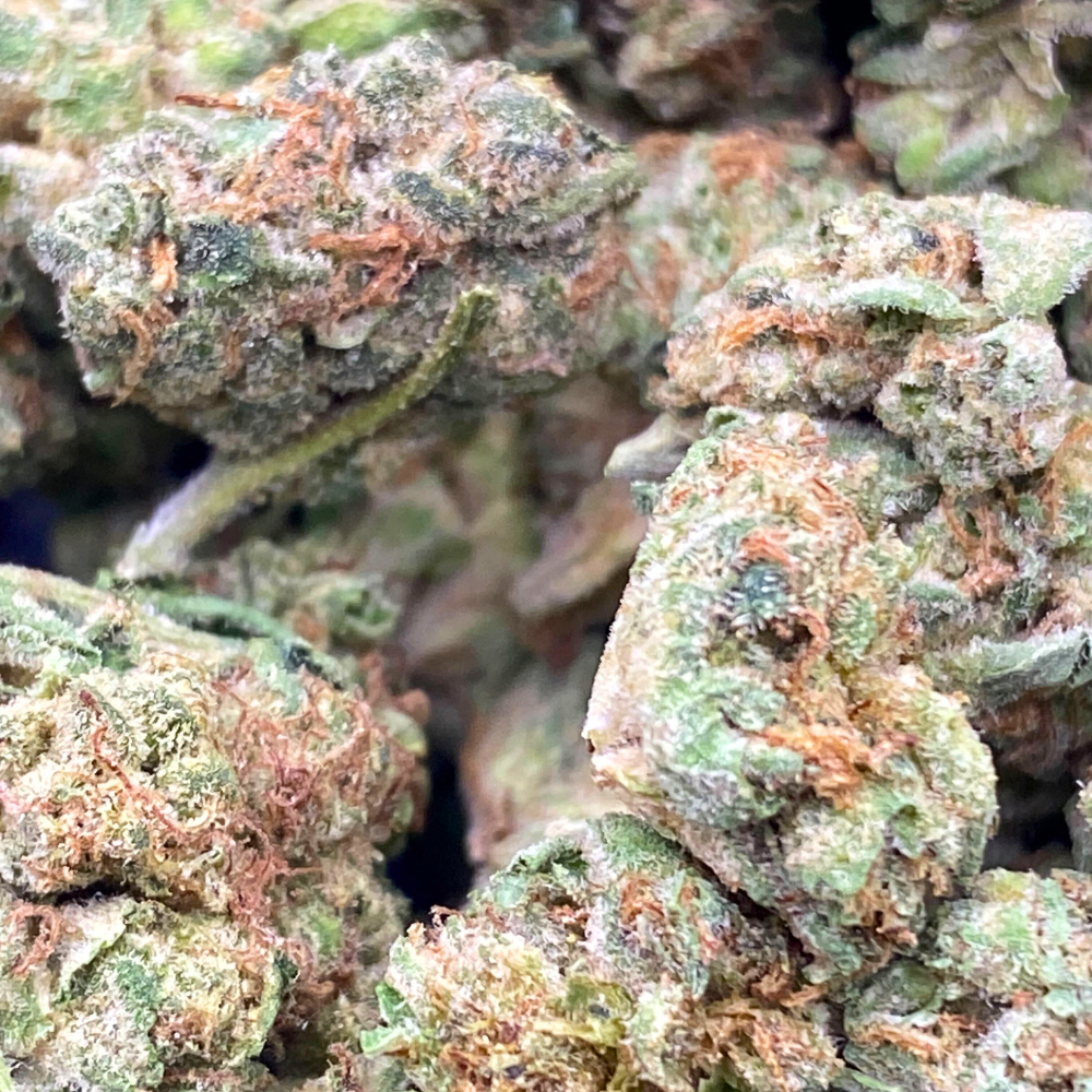 - Visuals: Bright green buds with vibrant orange pistils and heavy trichome sparkle