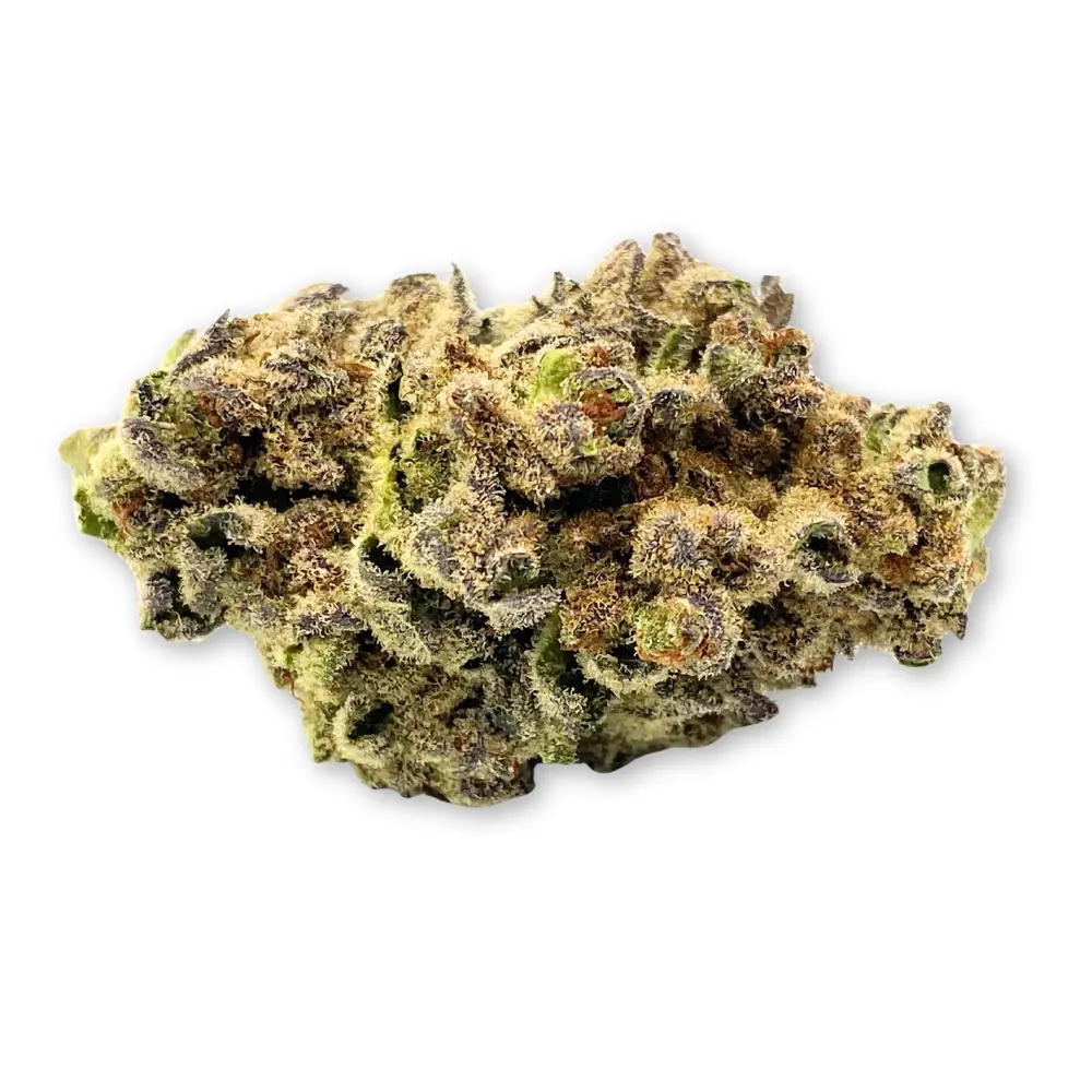 Punch Breath is an indica-leaning hybrid presenting compact, resin-rich buds with diesel-forward pungency touched by subtle sweetness. The palate reveals pepper and pine wrapped in smooth kush undertones, delivering a balanced and flavorful finish. This batch tests at 24.17% THCa and 22.27% total cannabinoids, highlighting its resin-coated structure and kush-driven depth.