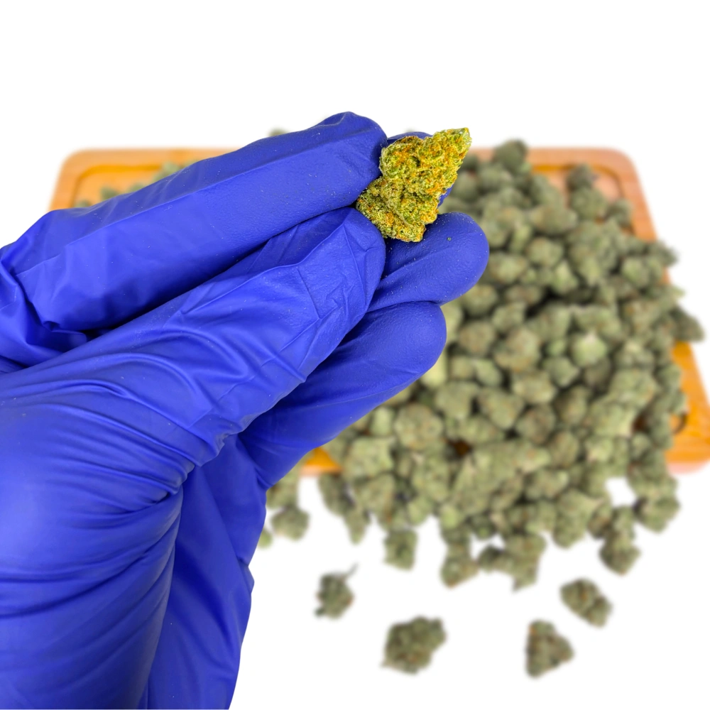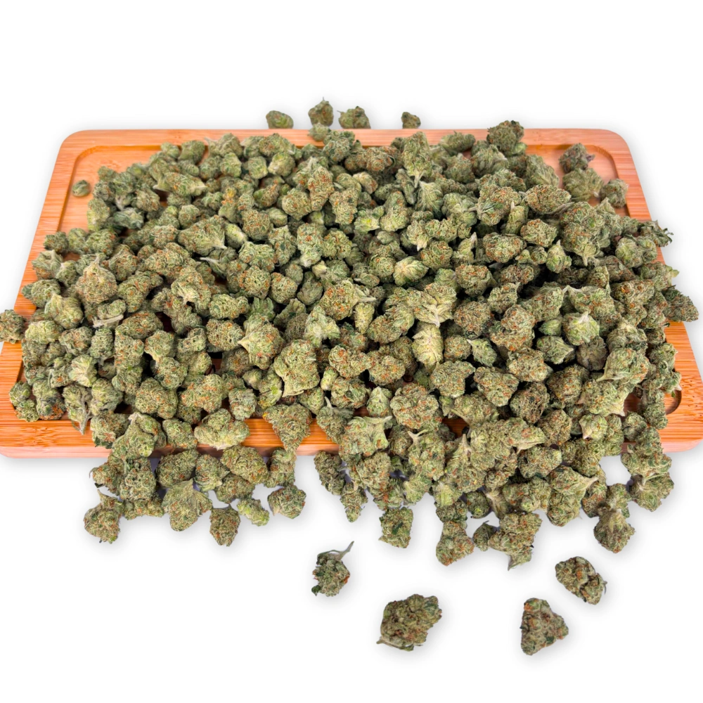 Sour Diesel THCa Flower Smalls is a sativa-dominant hybrid cultivar commonly referred to as Sour D. The genetic origin is debated, with lineage most often attributed to either Chemdog-related crosses or a combination of skunk and sativa genetics.