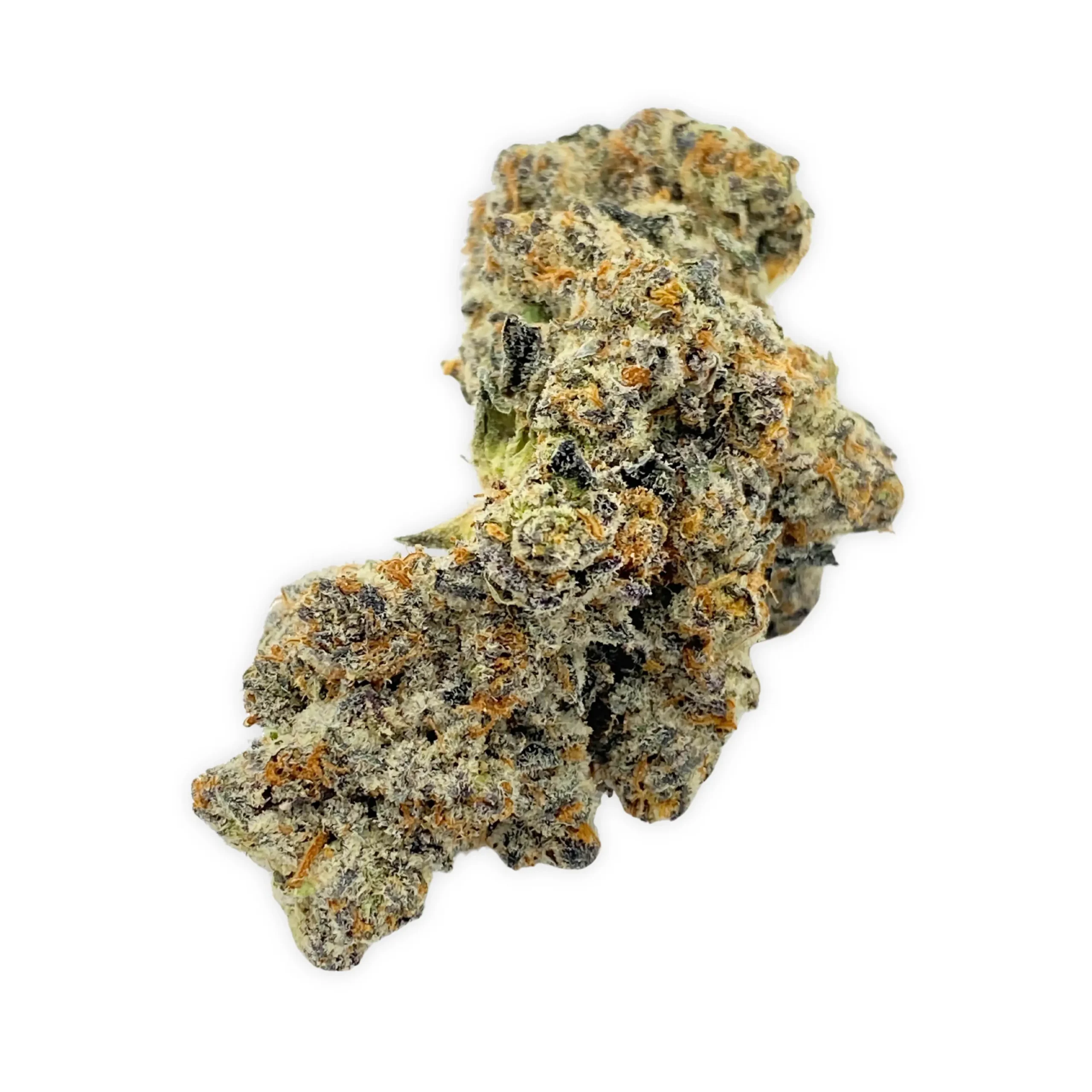 White Chocolate Chip is an Indica-dominant THCA flower known for its dessert-forward aroma and balanced cannabinoid profile. This batch offers a sweet, nutty scent layered with earthy diesel undertones. The buds are moderately dense with a blend of olive green, light purple, and amber hairs, coated in a consistent layer of trichomes. A solid pick for retailers seeking an approachable Indica option with visual appeal and flavor.